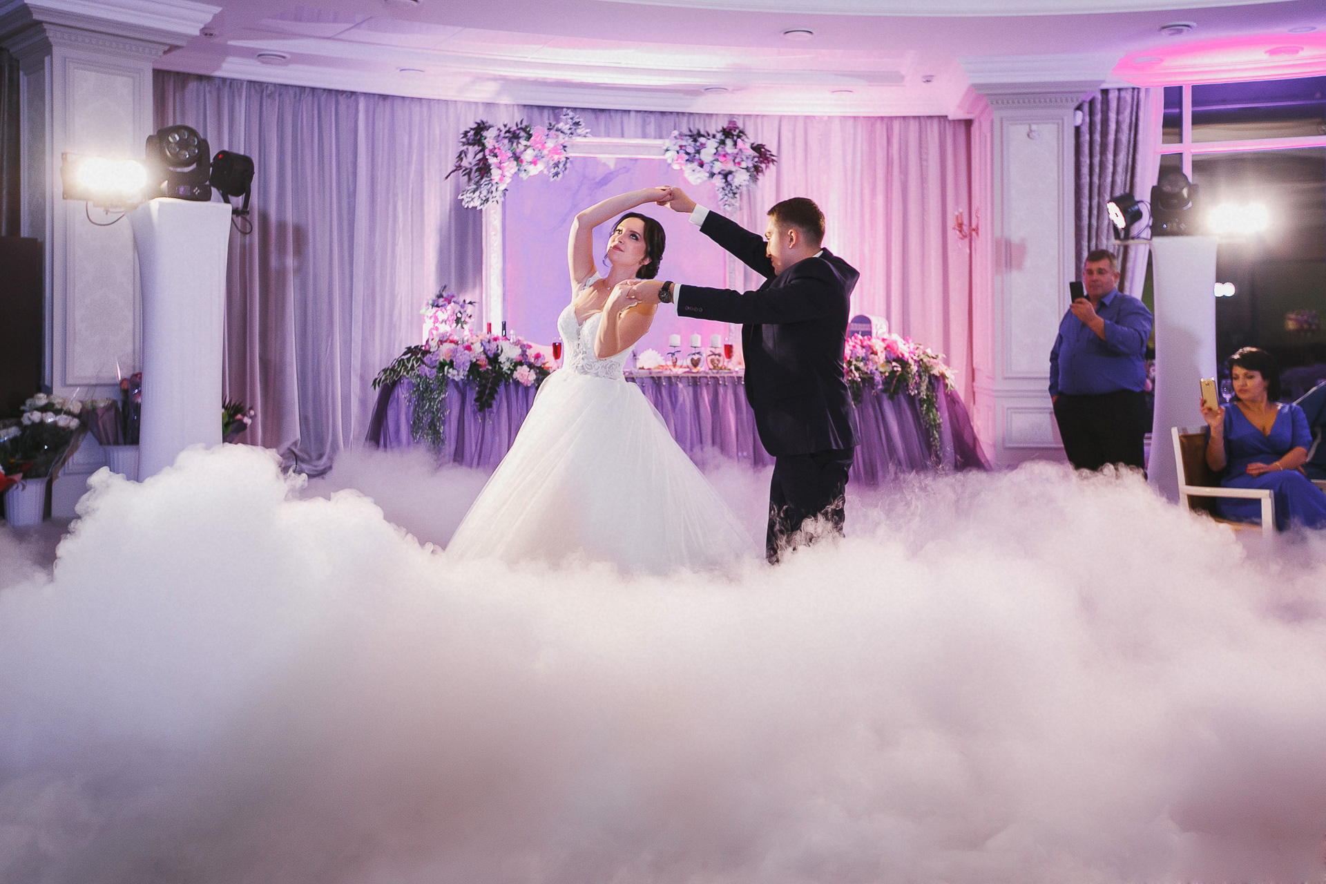 Тяжёлый дым на свадьбу для первого танца молодожёнов.